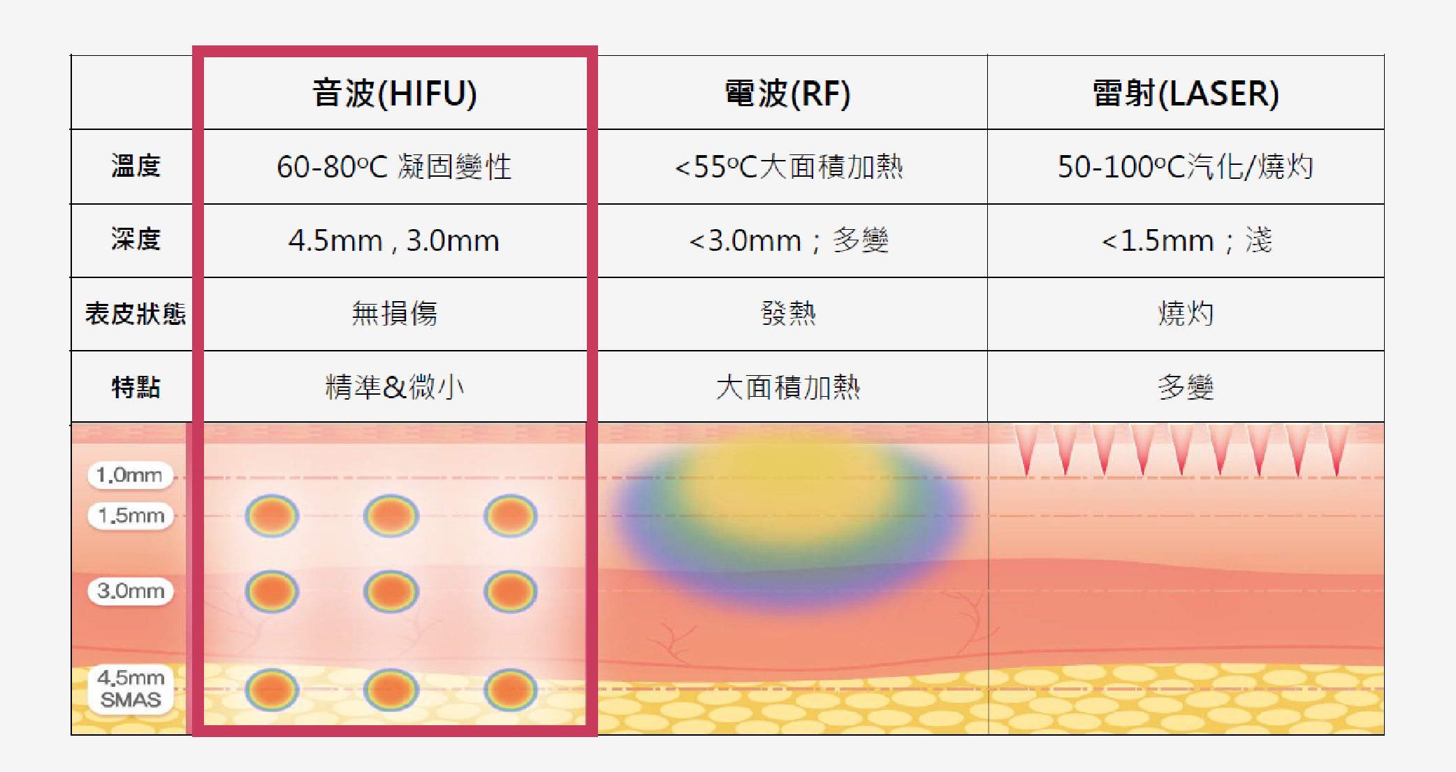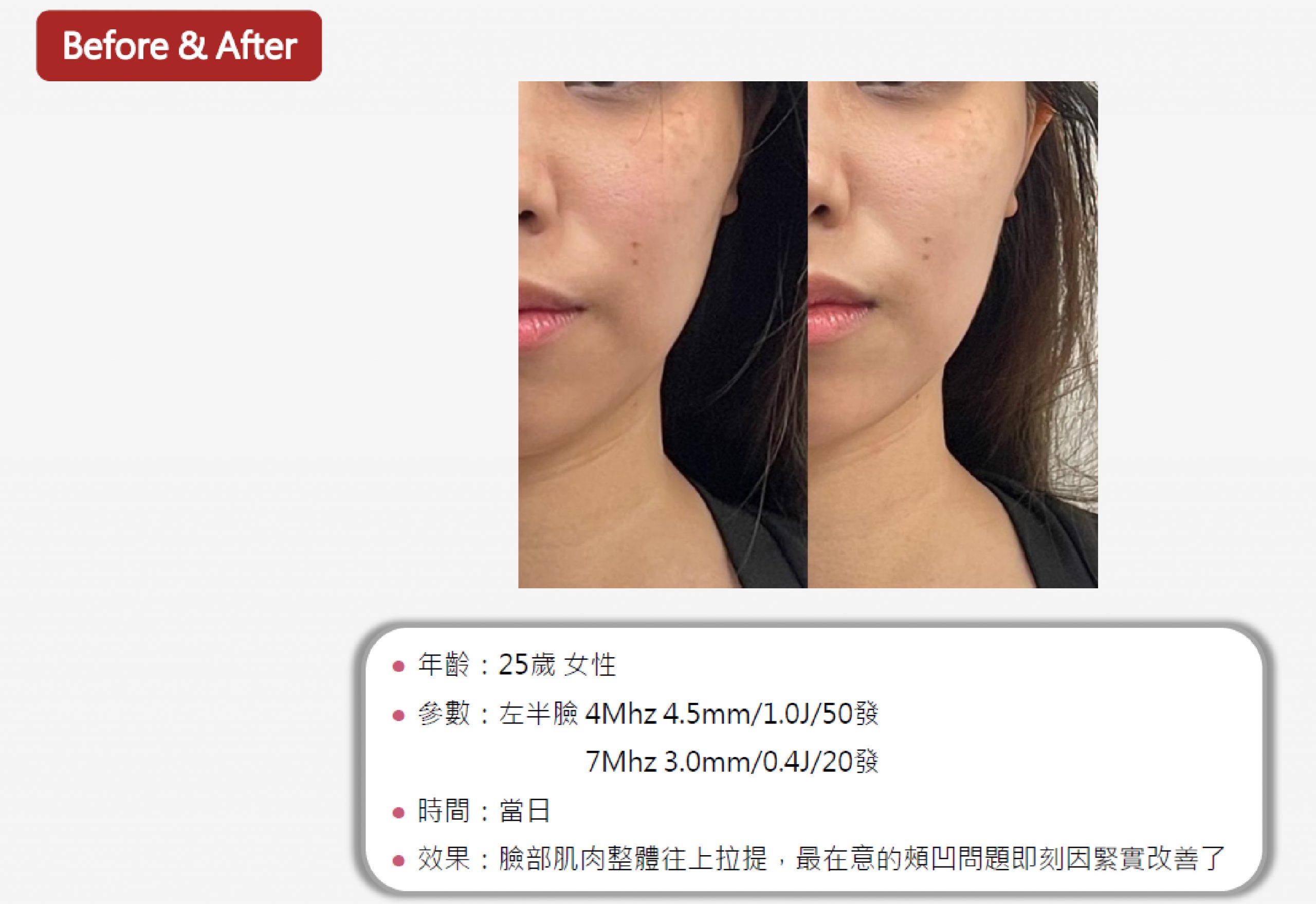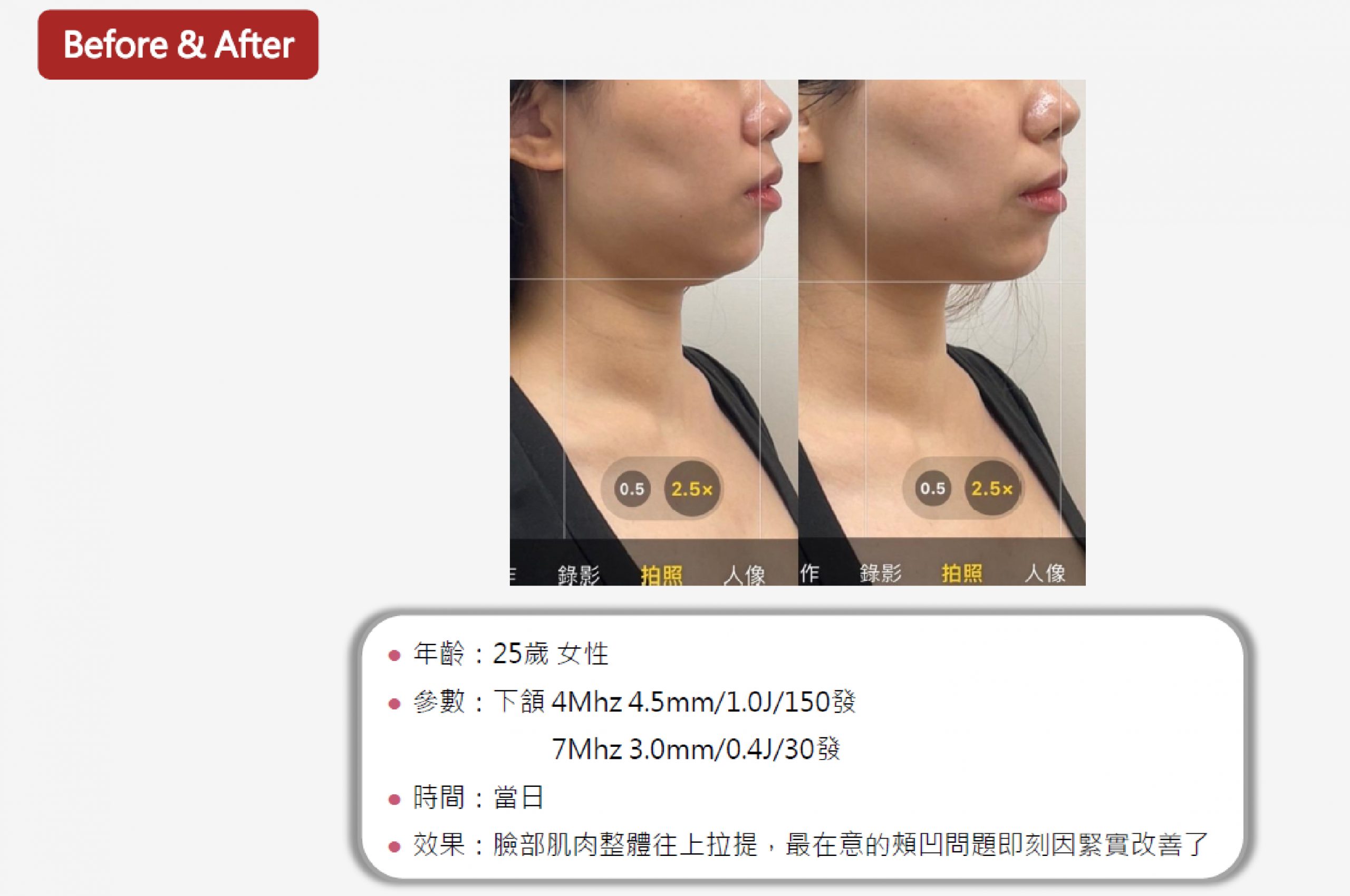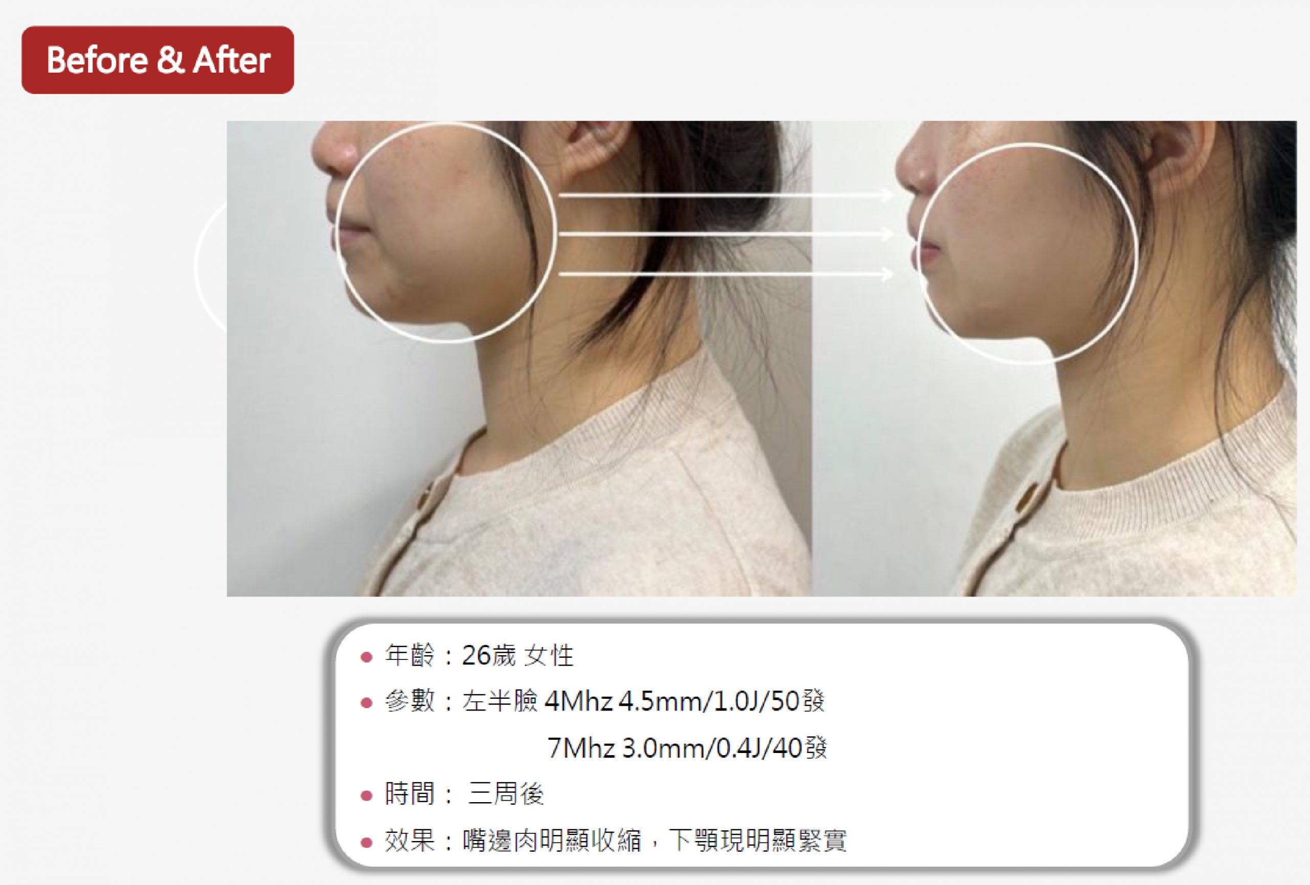 深入4.5mm真皮層加熱組織。適合雙下巴明顯或下半臉輪廓模糊者,